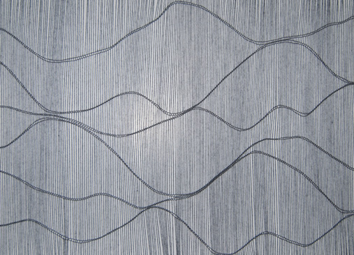 Aus parallel gespannten Fäden und ihrer nachfolgenden Verknüpfung miteinander entstehen zeichnerische Arbeiten. Ausgehend von der Zeichenserie "gestrickt-gezeichnet" wird in der Arbeit "Fadenspannungen" der Faden selbst zum zeichnerischen Mittel.