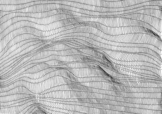 Die Zeichnungen der Serie "gestrickt gezeichnet" basieren auf der Technik des Strickens. Ein Gestrick verbindet 2- und 3-Dimensionalität, sowohl in der Technik der Herstellung - eine Bewegung im Raum wird genutzt um eine Fläche herzustellen- als auch in seiner Erscheinungsform. Ich zeichne strickend: Masche für Masche und Reihe für Reihe verknüpfe ich die Linien auf dem Papier. Wie beim Stricken erfolgt die Musterbildung in meinen Zeichnungen aufgrund der Verknüpfung der Maschen. Dabei spiele ich mit deren Längen, Größen und Abständen zueinander und der Form der Reihen. In der Arbeit gestrickt gezeichnet erkunde ich die Möglichkeiten und Grenzen der Technik des Strickens auf dem Papier.