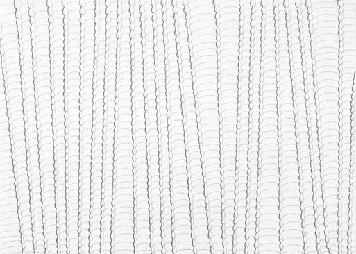 Die Zeichnungen der Serie "gestrickt gezeichnet" basieren auf der Technik des Strickens. Ein Gestrick verbindet 2- und 3-Dimensionalität, sowohl in der Technik der Herstellung - eine Bewegung im Raum wird genutzt um eine Fläche herzustellen- als auch in seiner Erscheinungsform. Ich zeichne strickend: Masche für Masche und Reihe für Reihe verknüpfe ich die Linien auf dem Papier. Wie beim Stricken erfolgt die Musterbildung in meinen Zeichnungen aufgrund der Verknüpfung der Maschen. Dabei spiele ich mit deren Längen, Größen und Abständen zueinander und der Form der Reihen. In der Arbeit gestrickt gezeichnet erkunde ich die Möglichkeiten und Grenzen der Technik des Strickens auf dem Papier.