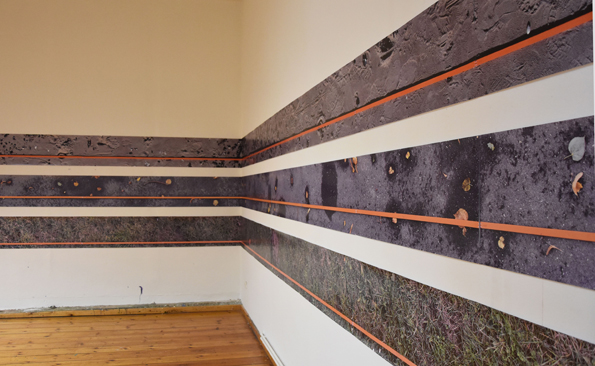 Ich bin diesen Fragen und dieser Grenze "nachgegangen", habe ihren Verlauf vor Ort gesucht. Dort untersuche ich ihr Größenverhältnis zur Linie in der Karte mit fotografischen Mitteln und später verschiedene Übergänge entlang der Grenze zeichnerisch im Atelier. Ebenso, wie sie vor Ort zum Teil sehr schwer genau wahrzunehmen ist, verschwindet sie über den zeichnerischen Prozess auch auf dem Papier.
