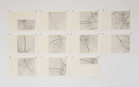 Die Zeichnungen aus der Serie "Grenze - Übergänge" zeigen lineare Verdichtungen an Kreuzpunkten