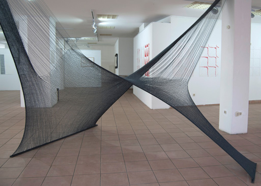 Raumgestrick 4, gestrickte Installation, Ausstellungsansicht GalerieN, Nienburg, 2016