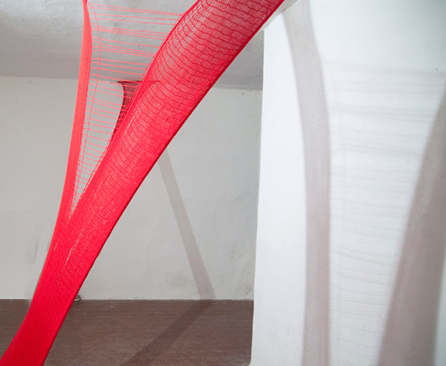 Raumgestrick 2, gestrickte Installation, Ausstellungsansicht Detail, MMX, Berlin, 2010